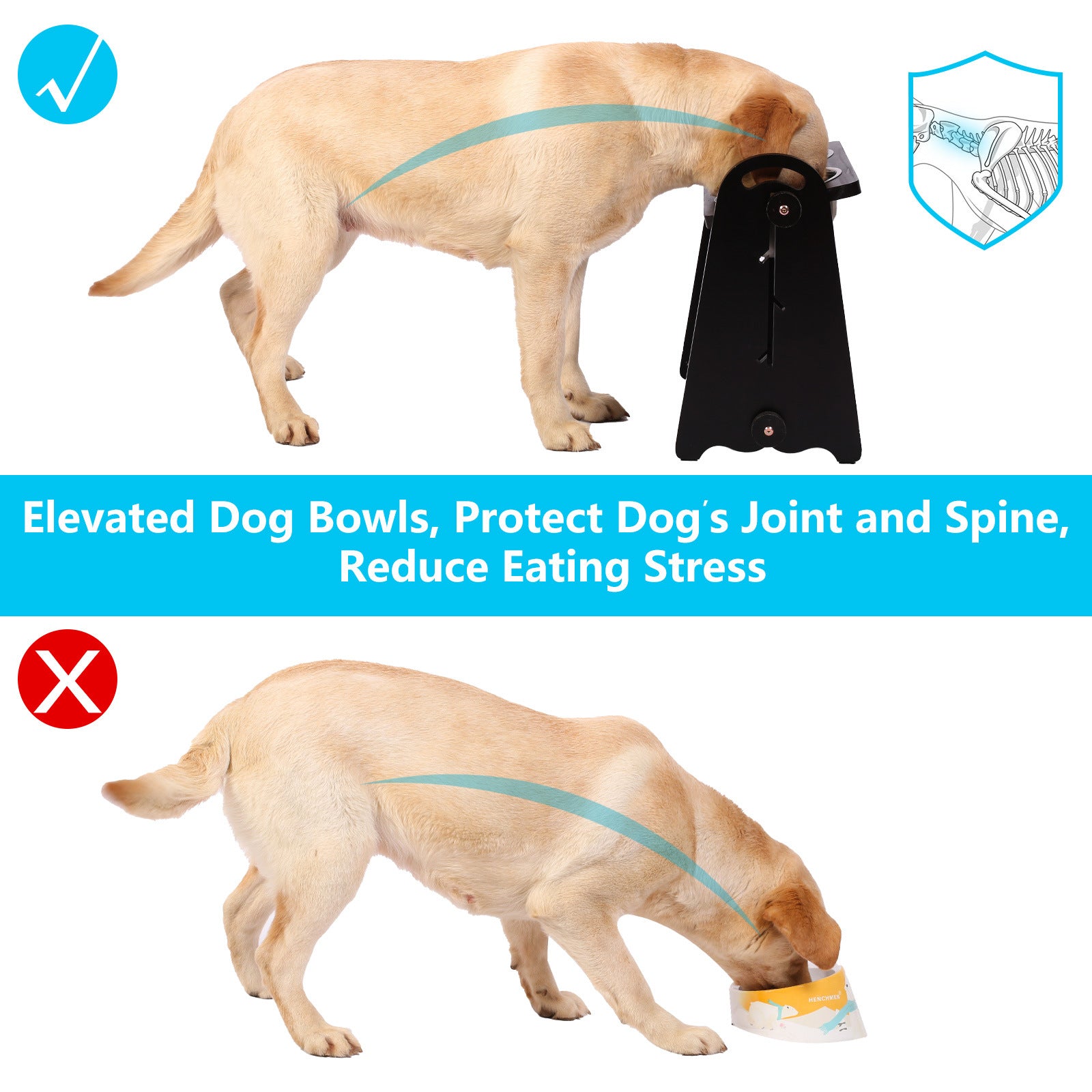 Compared with Traditional Dog Bowls, The Raised Dog Bowls Can Set to Different Heights and Angels for Dogs Friendly Eating or Drinking, 15° Tilted Angel Better Fits Dog’s Eating and Promotes Digestion, Preserves Dog's Health.