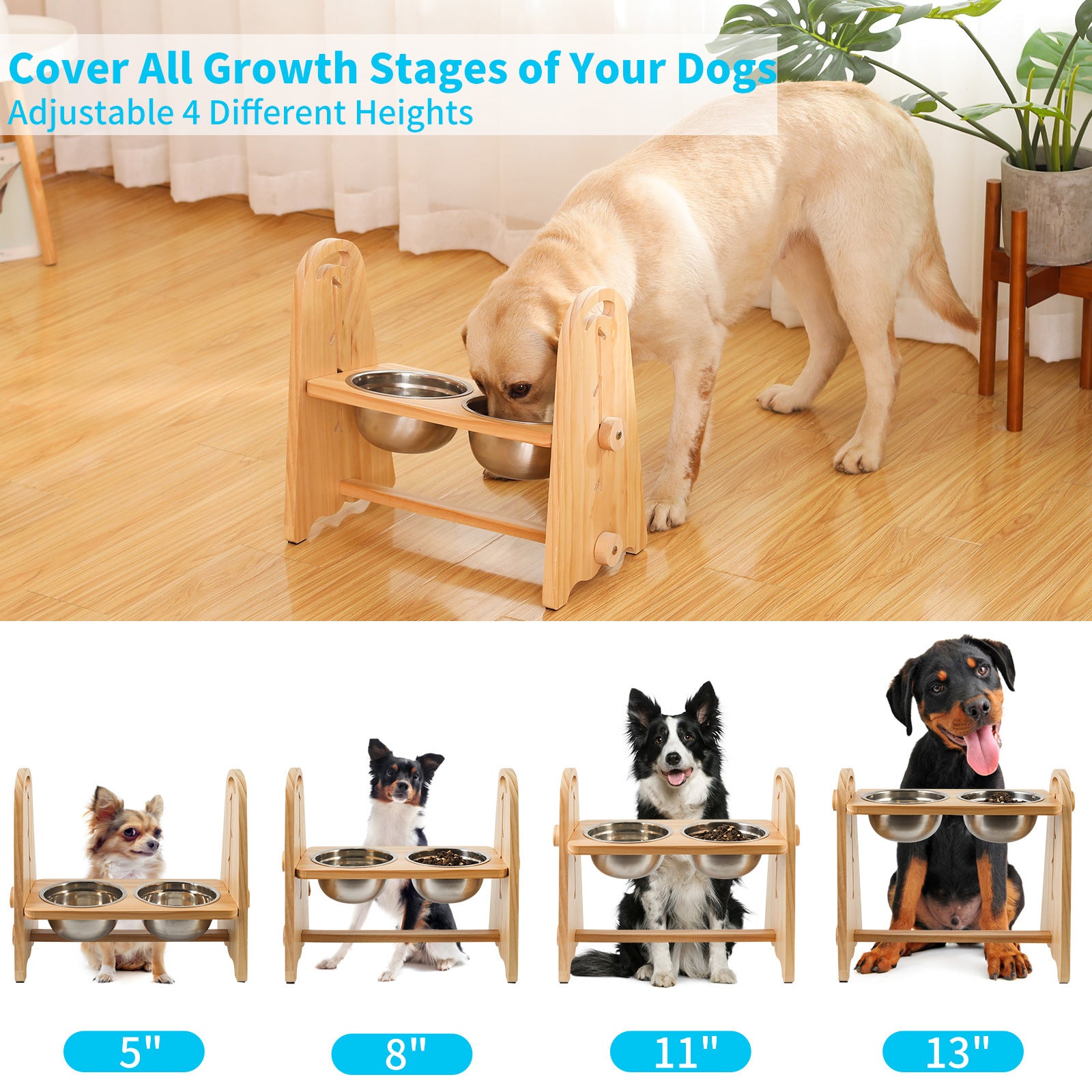 QKAMOR Elevated Raised Dog Bowls Can Adjusts 5 Adjustable Flat and Tilted Heights From 5” to 13.5”, Total 56oz(1600ml) Capacity Suits for Small Medium Large Sized Dogs, Cover Different Growth Stages of Your Dogs.